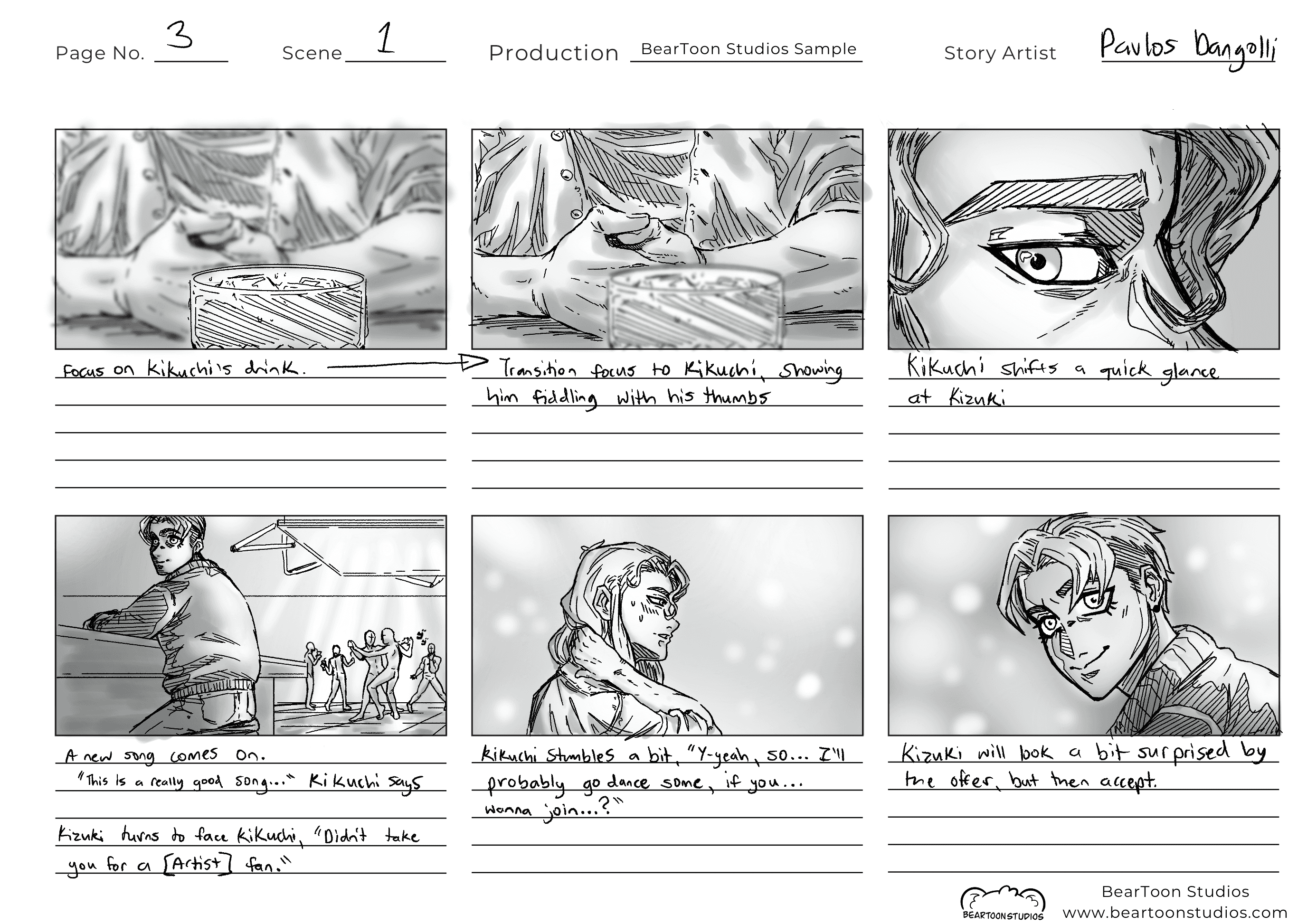Beartoon studios storyboard sample
